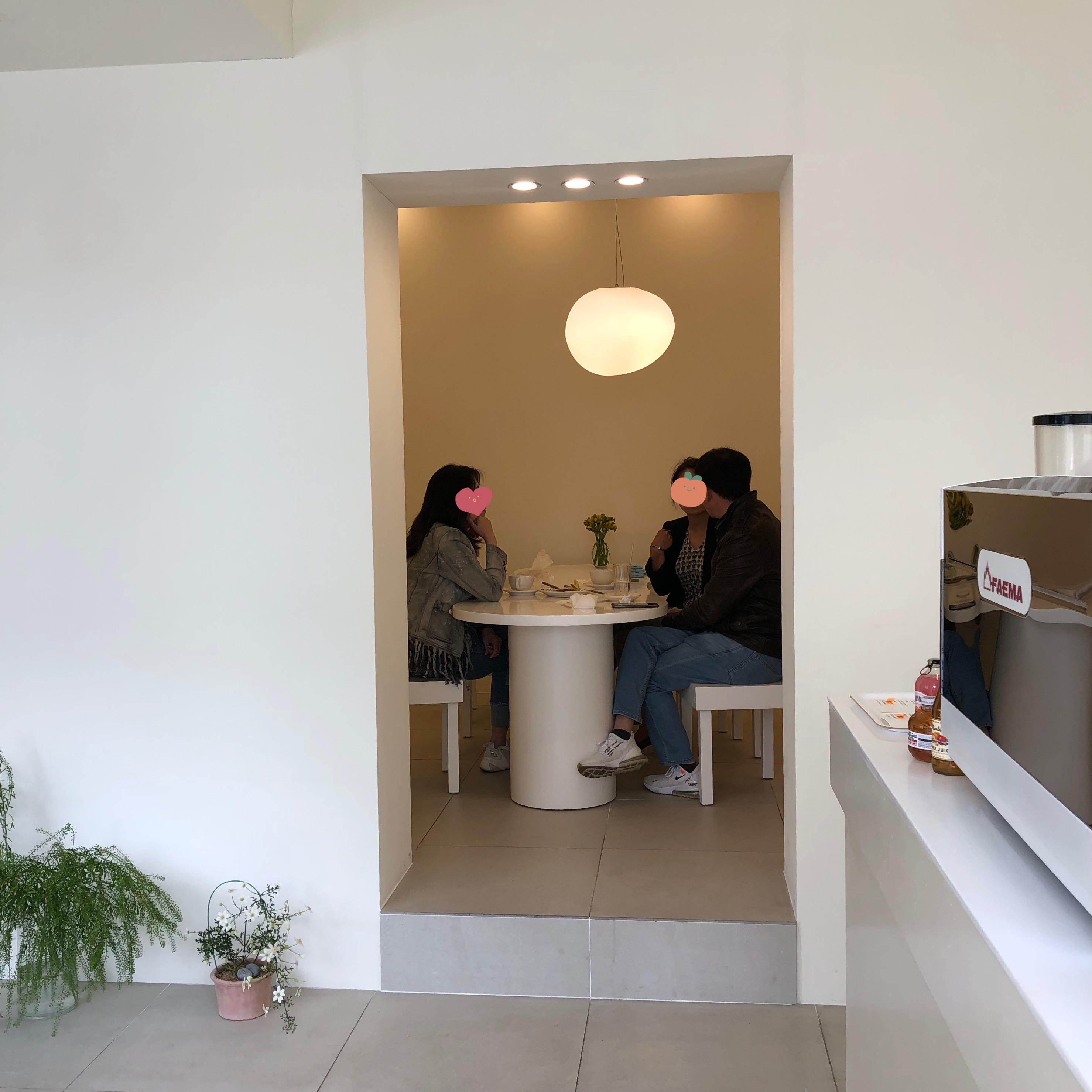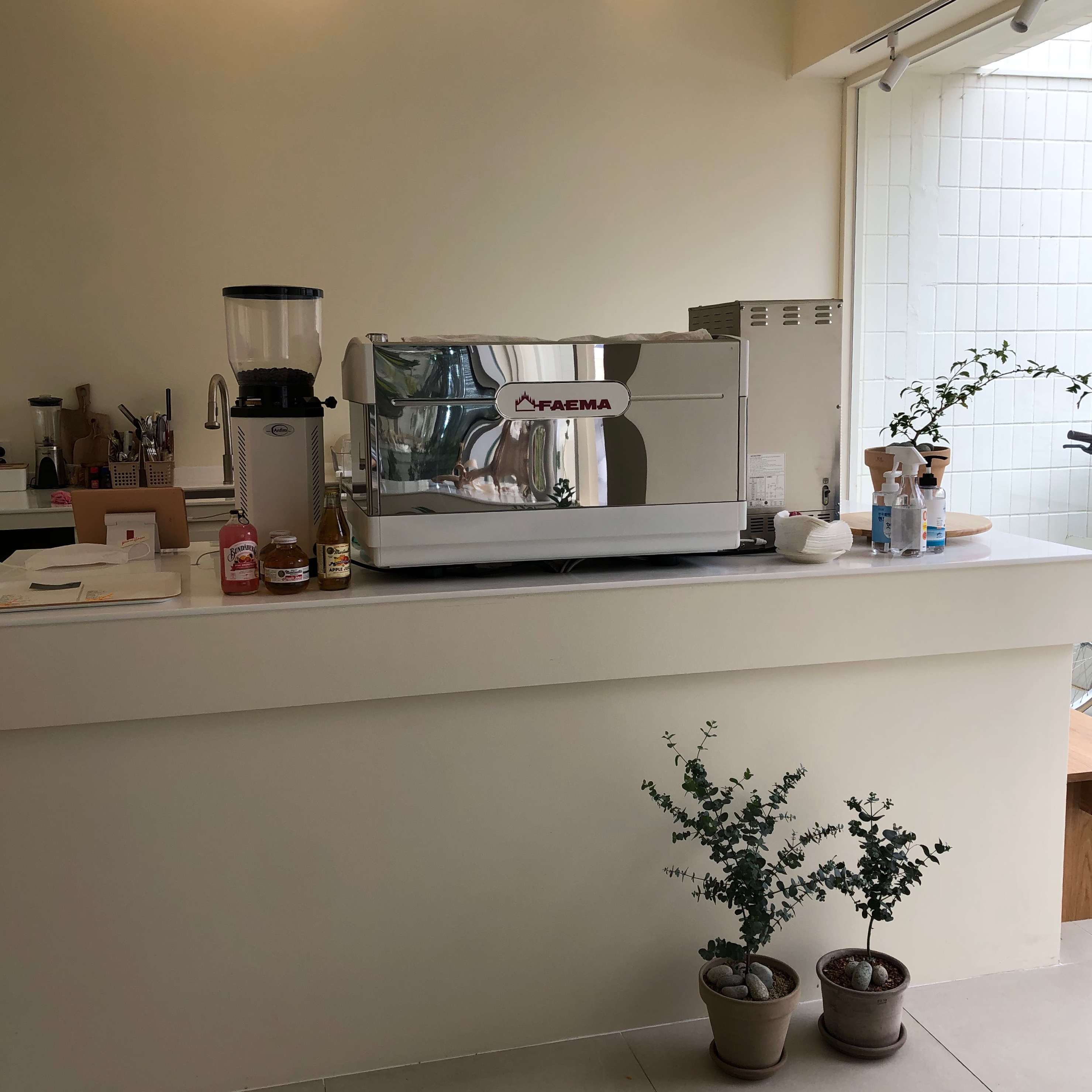 가게 안은 대체로 화이트 톤에 깨끗한 느낌인데 곳곳에 초록빛 식물들이 자리 잡고 있으니 눈이 편안해지는 느낌이에요.