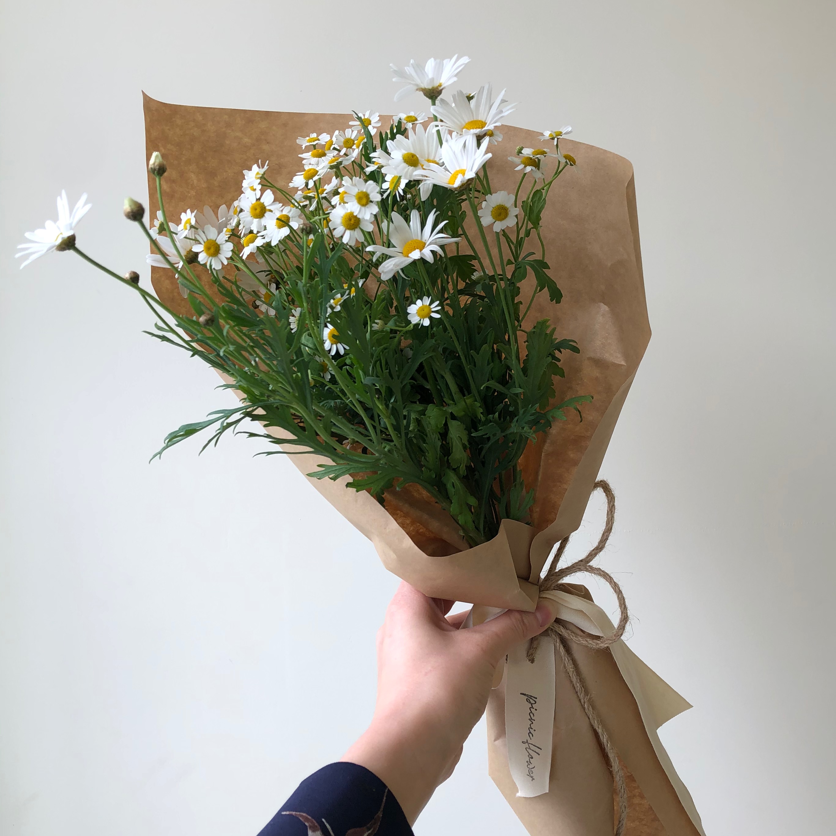 (더 작고 동글 동글한 게 데이지, 더 크고 길쭉 길쭉한 게 마가렛이랍니다. 요렇게 한다발 가격은 15000원이에요)